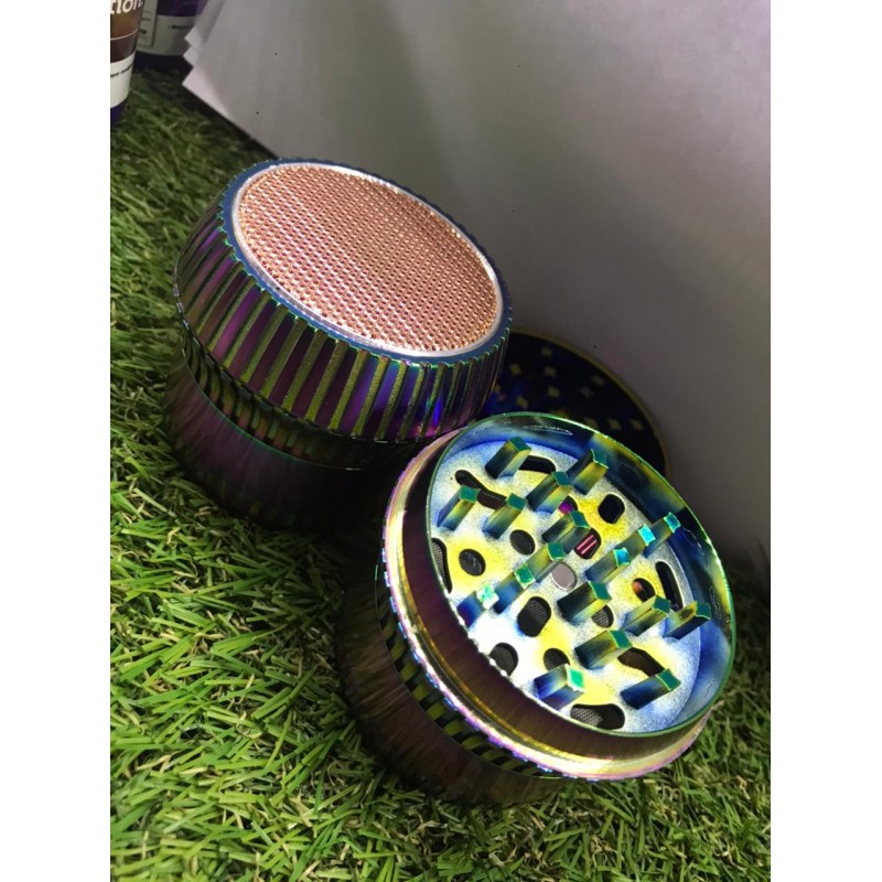 Además de su diseño simple y práctico cuenta con 4 partes, una de ellas con rejilla para que puedas aprovechar el kief de tus flores.